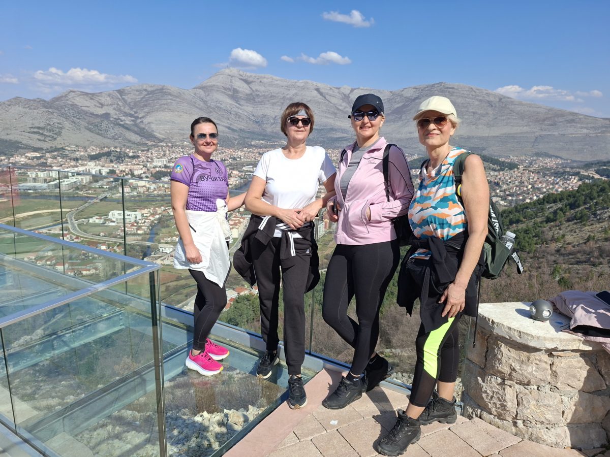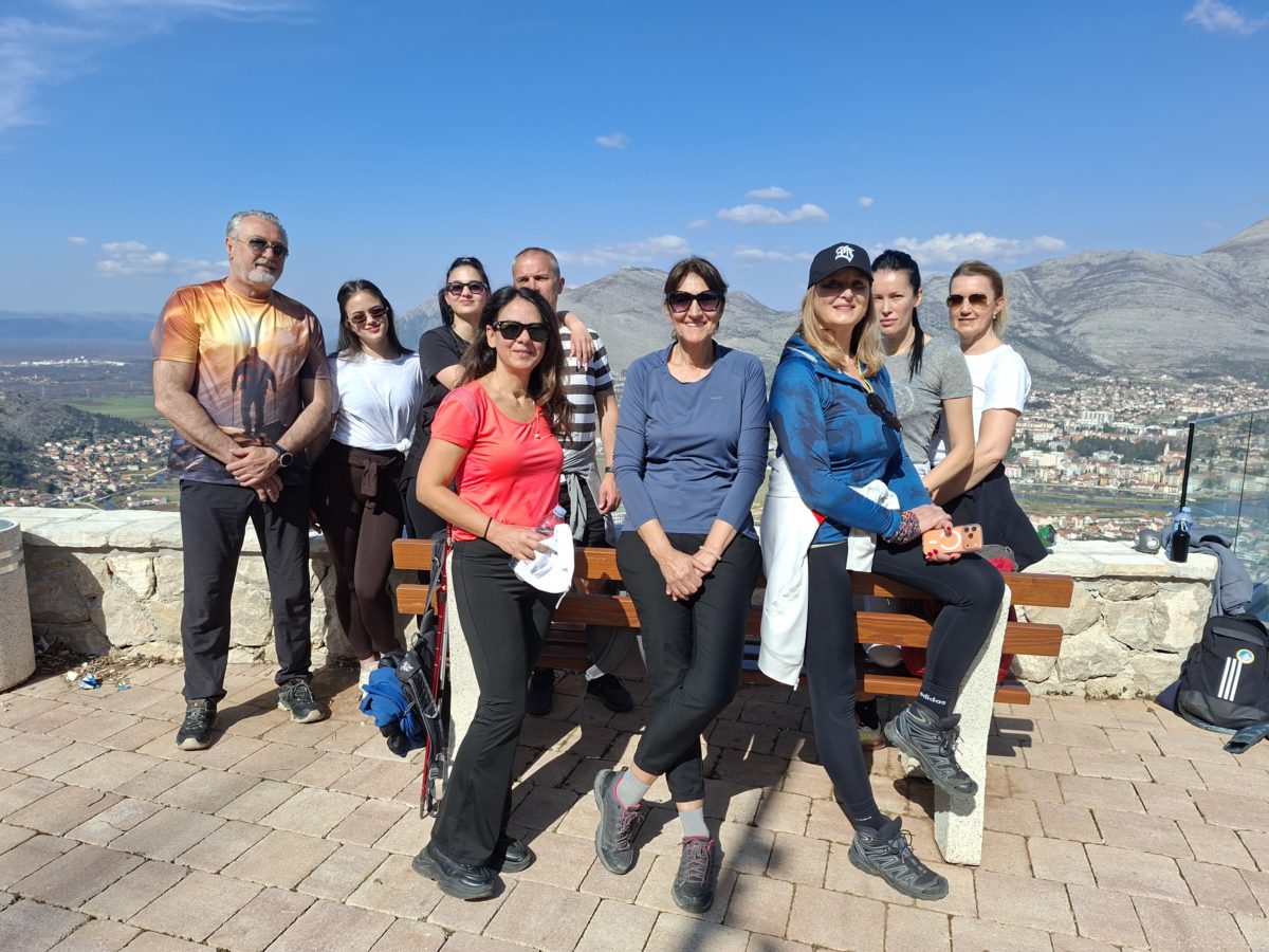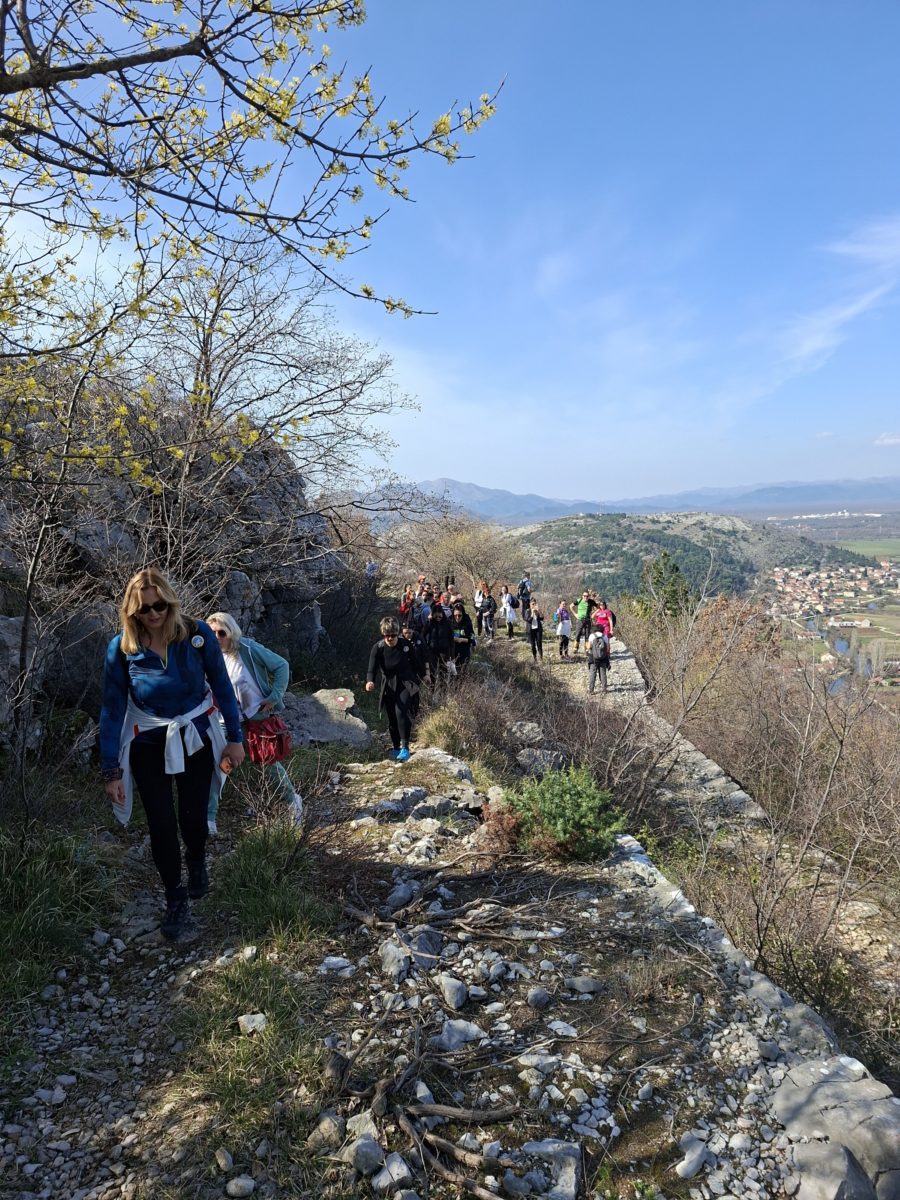 За излет се пријавило око 40 дама из Требиња, за које смо припремили пригодине осмомартовске поклоне пришиваче и беџеве нашег планинарског друштва. Шетња која је почела у 10 часова по изузетно лијепом дану обухватила је обилазак стакленог видиковца, дуже задржавање и пикник на утврђењу Страч, као и обилазак Матулића пећине. Изненађење током дружења била је DJ-журка на отовреном коју су на стакленом видиковцу за све даме организовали наш водич Славенко Вукасовић и суграђанин и пријатељ друштва Луис.