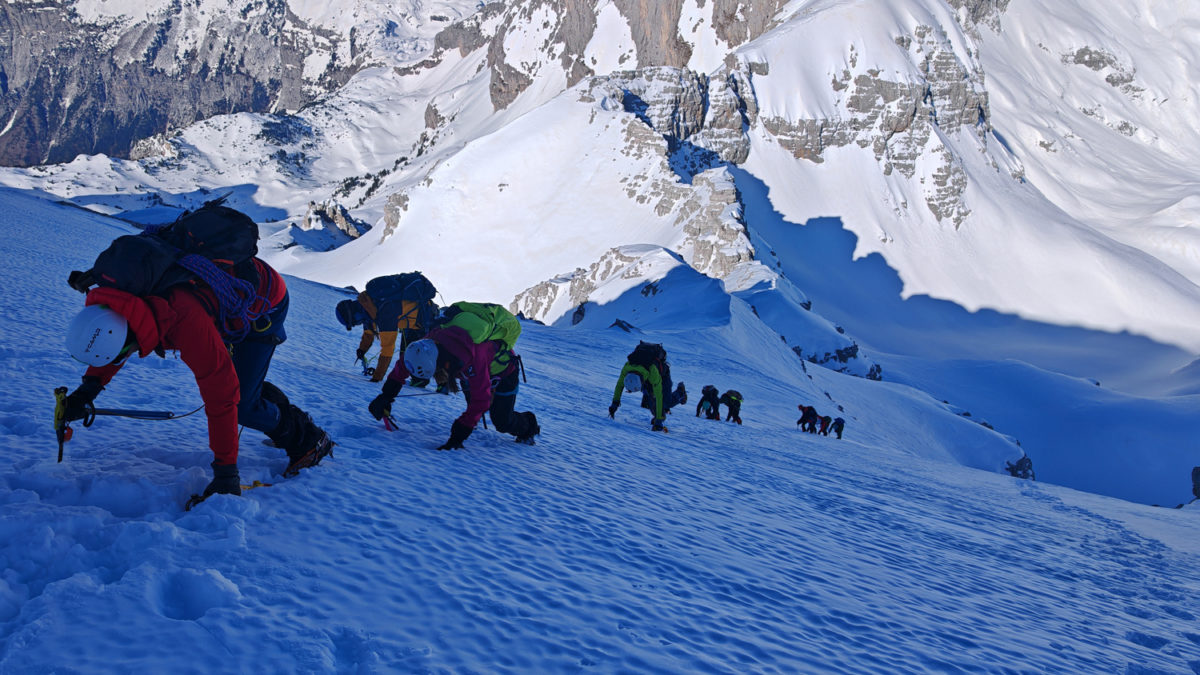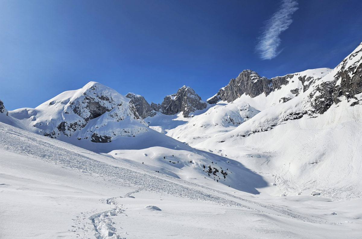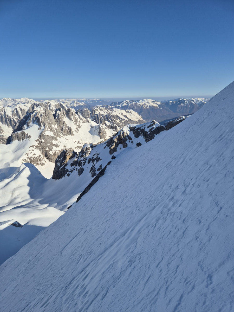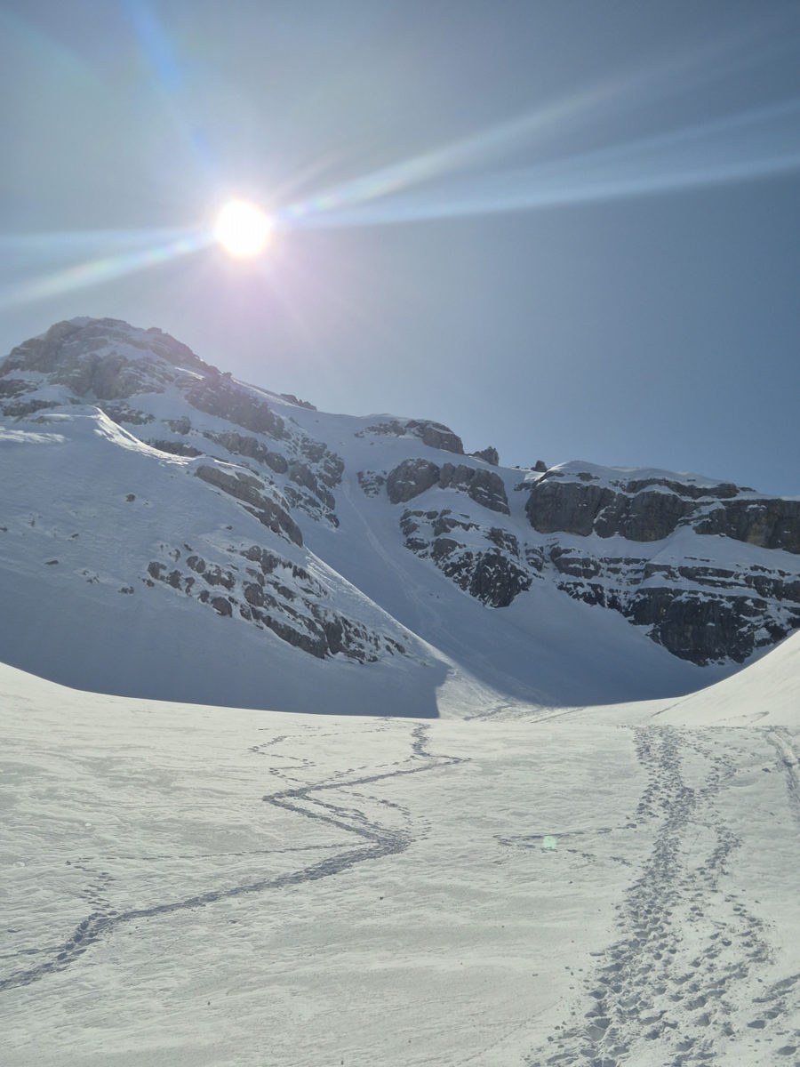 Kретање према врху захтијевало је сталну концентрацију и сигурну технику кретања. Сваки корак морао је бити стабилан. На појединим дионицама наилазили смо на трагове недавне лавине, што је додатно појачало опрез и подсјетило колико су зимски успони озбиљан подухват. Процјена терена и потенцијалне опасности од нових лавина била је неопходна током кретања.