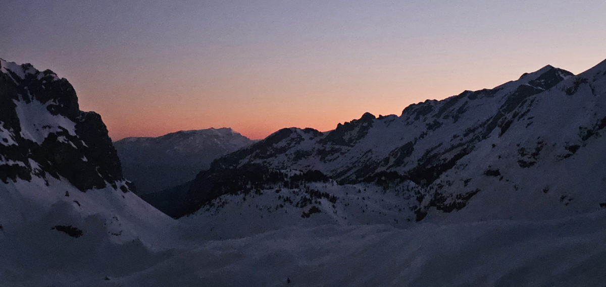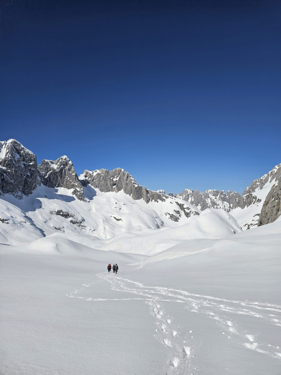 Зимски амбијент Проклетија дјелује сурово и величанствено у исто вријеме – стрме падине, залеђени терени и непрегледна бијела пространства на мјесечини подсјећају колико је ова планина дивља и захтјевна. Kако је свитало, високи врхови полако су излазили из таме, а први зраци сунца угријали су промрзле прсте и обасјали снијегом прекривене гребене.